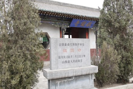 鎮(zhèn)國(guó)寺位于平遙縣城東北12公里的郝洞村,原名京城寺,明嘉靖十九年改為鎮(zhèn)國(guó)寺。它始建于五代北漢時(shí)期,距同蒲鐵路洪善車(chē)站僅1公里。寺院分為前后兩部分,從南到北依次有天王殿、萬(wàn)佛殿、三佛樓等。萬(wàn)佛殿是前院的主要建筑,它是我國(guó)現(xiàn)存最古老的木結(jié)構(gòu)建筑之一,該殿規(guī)模雖然不大,但造型雄偉,氣勢(shì)非凡。殿內(nèi)共有彩塑14尊,殿內(nèi)佛壇正中供有釋迦牟尼像,迦葉、阿難兩大弟子侍立左右,佛祖造型高大、面相端莊,具有濃厚的中唐風(fēng)格。