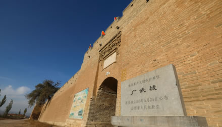 廣武古城分東、西、南三門,不設(shè)北門,街巷格局方正。坐落在山陰縣西南、雁門關(guān)外古長(zhǎng)城腳下。隸屬于山西省朔州市山陰縣張家莊鄉(xiāng)舊廣武村。