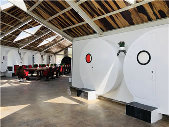 蝸牛公寓位于云岡石窟景區(qū)東山,是東山菩提藝術(shù)區(qū)的一部分,由云岡石窟研究院主導(dǎo)創(chuàng)意,用廢舊水泥管、廢舊鋼鐵等廢舊材料打造出來的綠色環(huán)保寫生建筑。走進“蝸牛公寓”,內(nèi)含會客廳、28間臥室,洗漱臺、衛(wèi)生間,其中地下公共部分還配有電影放映室、臺球室、酒吧、咖啡廳等公共休閑娛樂設(shè)施,長廊的墻壁,藝術(shù)家或藝術(shù)院校學(xué)生可以隨意涂鴉。這個特別隨意且有藝術(shù)范兒的空間,為到云岡石窟景區(qū)寫生創(chuàng)作、旅游休閑的人們提供了優(yōu)質(zhì)舒適的住宿、創(chuàng)作、娛樂空間。