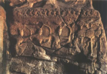 穿過神柱林立的佛光大道向西,呈現(xiàn)于世人眼前的是兩面相對的扇形皇家禮佛浮雕墻。這組正面相對的浮雕墻總體呈圓弧狀,長約20米、高約4米,畫面構(gòu)圖完美,雕刻細致,以高浮雕的形式,生動表現(xiàn)了北魏皇家盛大的帝后禮佛圖。車轔轔、馬蕭蕭的現(xiàn)場氣氛,充分再現(xiàn)了北魏當(dāng)時皇帝、皇后前往禮佛的莊嚴肅穆的宏大場面,這種場面讓人自然聯(lián)想到1500多年前云岡石窟作為皇家寺院曾經(jīng)的輝煌,讓人舉目流連。