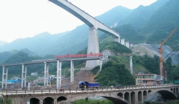 亞洲第一跨 亞洲第一跨位于鎮(zhèn)巴縣巴山鄉(xiāng)兩岔河中游襄渝鐵路Ⅱ線牛角坪雙線特大橋。大橋2006年3月開工,至今年8月12日,該橋主體工程按原計劃順利合龍。主橋墩埋深50米,主墩墩高98米,全長577.4米,鐵路雙線T型預(yù)應(yīng)力混凝土連續(xù)剛構(gòu)主跨為192米,位居亞洲第一,在世界上僅次于主跨250米的葡萄牙費(fèi)魯瓦利阿大橋。 據(jù)了解,該橋計劃2009年3月建成交付使用。屆時,高達(dá)111.3米的雄偉大橋,將成為襄渝鐵路線上又一道獨(dú)特的風(fēng)景。