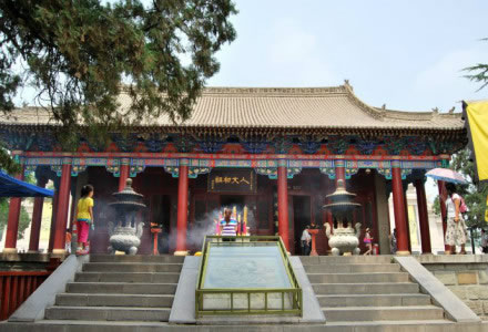 大殿正中木質(zhì)壁龕內(nèi)供放著一尊巨大的石刻軒轅黃帝浮雕像。這尊中華民族人文初祖的浮雕像,是以東漢恒帝建和元年(147年)建于山東濟(jì)寧嘉祥的武梁祠黃帝石像為藍(lán)本,經(jīng)國(guó)家文物局批準(zhǔn),適當(dāng)融入現(xiàn)代審美理念放大刻制而成。