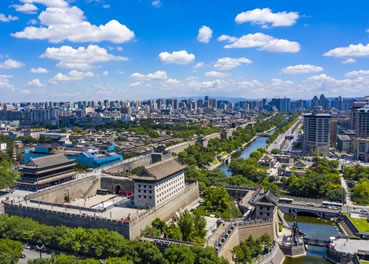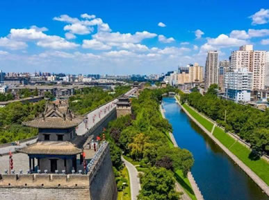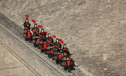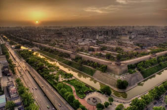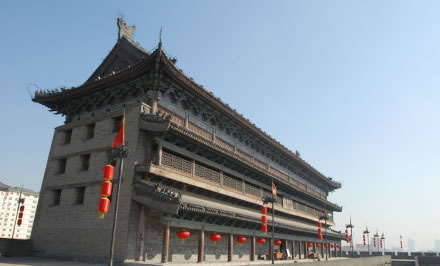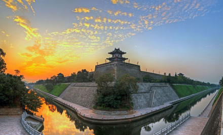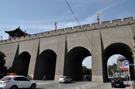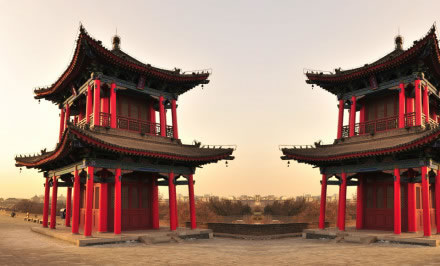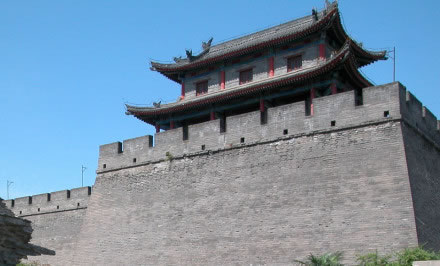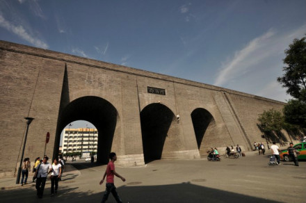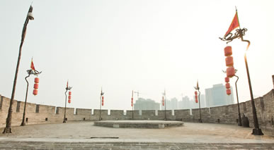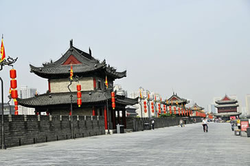 雄偉壯觀的西安城墻已成為市區(qū)最吸引人的觀光勝地之一。沿城墻外側已建成“環(huán)城公園”,成為城市居民晨練的絕佳活動場所。 |