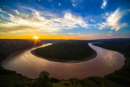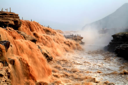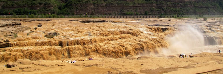 黃河在延安市延川縣眼岔寺鄉(xiāng)馬家騫村入?yún)^(qū)境,自北而南沿東界流經(jīng)延長(zhǎng)縣安河、羅子山、南河溝,在宜川縣猴兒川口出境,長(zhǎng)183千米。在宜川縣城東48千米處,黃河由200—300米寬收縮到50米,突然跌入34米深的壺形峽谷,形似巨壺沸騰,十分壯觀,稱之為宜川壺口瀑布。