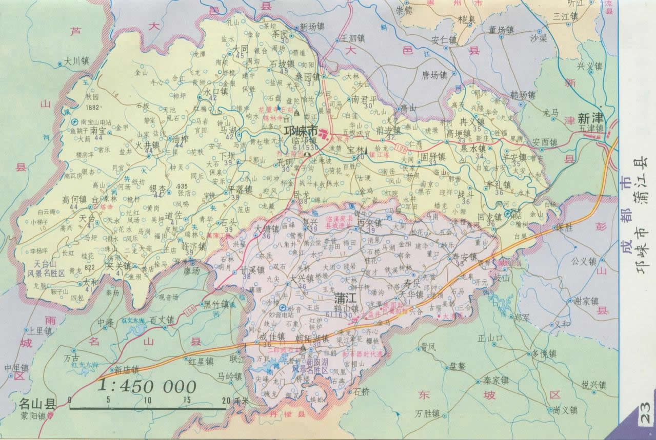 邛崍市轄18個(gè)鎮(zhèn)、6個(gè)鄉(xiāng):
