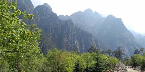 山上的原始森林除了松、杉、樺外,還有珍貴的珙桐、樟和楠木,山上各色野花爭(zhēng)奇斗艷,更有那四季輪流開放的三、四十種杜鵑。從山腳往上,一路景色,變化萬千.山腳溪水潺潺,岸芷汀蘭;山腰花紅柳綠,草木蔥蘢;高山霜葉片片,層林玉樹瓊枝,晶花、夏綠、秋實(shí)、冬雪之風(fēng)光于一處,融自然之美景于一山。自道貫通路便可成為一條很好的游山道。