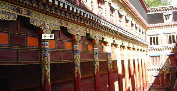 步入大堂內(nèi),穹頂高古,富麗堂煌,四壁有古壁畫,雕刻栩栩如生。寺內(nèi)高僧云集,傳道布經(jīng)誦咒朝拜者絡(luò)繹不絕,整個寺院經(jīng)聲終年朗朗。