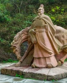 孔明立關(guān)像南,有尊雕塑是蜀漢先主劉備。劉備在成都定都以后,于建安二十二年(217年)設立了劍閣縣,隸屬于劍門關(guān),加強了對劍閣的防守,以劍閣為中心,將漢中到成都的一千多里連成了一個整體,保證從成都至梓潼,穿劍閣過葭萌、白水,到陜西勉縣陽安關(guān)、漢中這條劍閣道的安全和暢通,為以后諸葛亮出祁山、姜伯約伐中原創(chuàng)造了條件打下了基礎。據(jù)有關(guān)資料記載,劉備在稱帝之前,就四次往來于劍門關(guān),加上《三國演義》第六十五回敘述的劉備在進軍成都擊劉璋途中,又返回葭萌關(guān)看張飛和馬超廝殺,共往返六次之多。