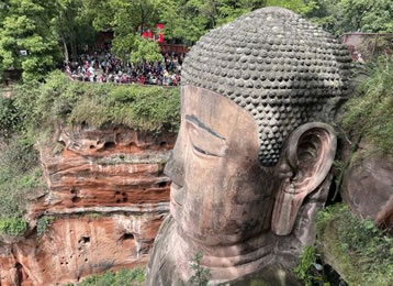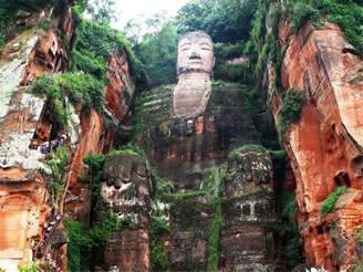 凌云山緊傍岷江,上有凌云寺,建于唐代。依山開鑿大佛一座,通高71米,腳背寬8.5米,為當(dāng)今世界第一大佛。大佛為唐代開元名僧海通和尚創(chuàng)建,歷時(shí)90載完成。大佛為一尊彌勒座像,雍容大度,氣魄雄偉,被詩人譽(yù)為“山是一尊佛,佛是一座山”。