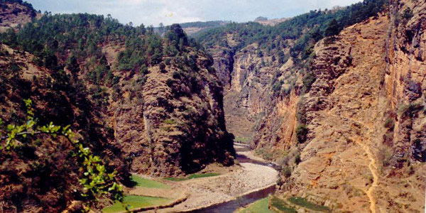 小 特色景色 會(huì)東素有“小三峽”之稱的兩岔河位于會(huì)東縣會(huì)東鎮(zhèn)的普發(fā)、秧發(fā)、水塘三村之間。據(jù)史料記載,蜀漢建興三年諸葛亮南征途中,與耶魯王(孟獲)交戰(zhàn)的歷史遺址石馬槽就位于此地。同時(shí),也有關(guān)于元朝末年,張三豐為尋求一民間藥引,跋山涉水前往當(dāng)時(shí)的普雄寨(即現(xiàn)在的普發(fā)村),攀爬于懸崖峭壁之間采集猴漬而傳醫(yī)濟(jì)世的傳說。這里依山傍水、山清水秀、險(xiǎn)峰相連,在雄偉壯觀之勢盡顯其中。特別是兩岸溶洞中的鐘乳石形態(tài)萬千、色澤艷麗,凡到過大小三峽的人都譽(yù)之為“賽三峽”,認(rèn)為這里無論景色或是雄壯都勝過三峽。更令廣大游客留連忘返的還是多處溶洞中“仙翁指路”、“倒垂蓮”、“龜石”等形神兼似的鐘乳石。風(fēng)景秀麗的張家灣森林公園同時(shí)也位于該鎮(zhèn)境內(nèi),有車輛可直接到達(dá)。張家灣森林公園內(nèi)有經(jīng)州、縣宗教事務(wù)管理部門批準(zhǔn)修建、趙樸初先生題字的寺廟彌陀院,寺內(nèi)供奉的數(shù)尊緬甸漢白玉佛,以及該鎮(zhèn)于2002年經(jīng)多方籌資47萬余元新建,距河面100余米、長78米的兩岔河鋼架索橋,均可稱得上涼山之最。自2000年底至今,慕名從云南昆明、成都、攀枝花、西昌等地到“小三峽”、張家森林公園、石馬槽遺址觀光旅游的人就達(dá)3萬多人次。 |