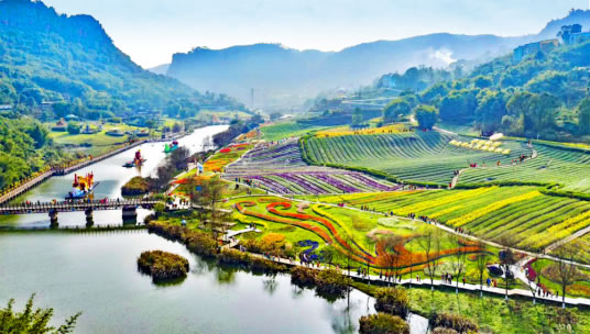 花田酒地旅游景區(qū)依托清溪河下游河畔而建,以展示花田景觀和酒文化為主題,由清溪河道景觀、花田景觀、景觀橋、半山棧道、瀑布景觀、白酒莊園等組成。也有漂流、游船、玻璃棧道、高空蹦極、攀巖、滑草等多項(xiàng)綜合娛樂(lè)項(xiàng)目。景區(qū)花卉的花期覆蓋春、夏、秋、冬四個(gè)季節(jié)。