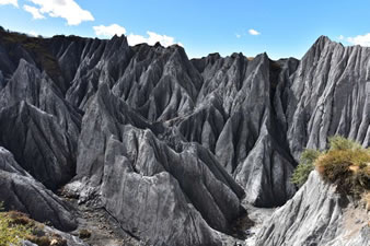 受第四紀新構造運動影響,隨著青藏高原的隆起,鮮水河斷裂帶中的巖石,受到擠壓、剪切,發(fā)生破碎、糜化,形成糜棱巖石林。