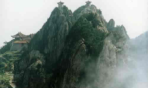 鎮(zhèn) 老君山風景區(qū)位于鎮(zhèn)西鎮(zhèn)境內,由大、小老君山、寨子巖、河口水庫等組成,距縣城22公里,以其悠久的歷史、深厚的文化沉淀和奇麗險峻的自然風光而聞名。 大老君山自隋威遠建縣以來就是威遠與榮縣的界山,為西周時周武王封周榮公之地,又名榮德山。相傳太上老君曾在此煉丹,唐末五代道士陳摶(自號扶搖子,宋太宗賜號希夷先生)曾在此修真,故又名希夷山。老君山從唐宋以來就已成為道家的修煉之地和風景名勝之地,清乾隆《威遠縣志》稱為"老君丹灶",是威遠八景之一。老君山海拔800多米,雄奇瑰麗,方若削壁,高矗云表,有華山之險。從山腳到山頂,只有一條狹窄陡峭的曲折小道,攀登時須手腳并用方可。山西南面崖壁上刻有四則題詩、四龕唐宋造像、三通摩崖碑和三則題字。摩崖造像中保存完好又富有代表性的是太上老君及侍者力士造像。其中佛道合龕造像在四川極為罕見。題詩以清末翰林、榮縣詩人趙熙的一首最為精彩:"一念前生墮世間,飄然人外御風還。秋來化鶴三千歲,獨立榮州第一山。"三則題字分別為"煙霞"、"云梯"、"丹巖"。在山的西南面,有一古洞,相傳是太上老君煉丹時居住之地,人稱"神仙洞"。大老君南面為呂仙崖,上有四龕唐代摩崖造像,山上尚保存古寨集生寨城墻遺址。 寨子巖山寨位于去老君山途中的煙廠河壩,為清咸豐年間建造,現保存寨墻一段、石室一間,有月亮門、楊家大院遺址及"天寶亭"、"玩花臺"、"臥鵂橋"等10余處石刻題字,其中半山腰處一兩米見方的"鵂"字為威遠迄今為止發(fā)現的最大刻字。寨下河中有一蘑菇狀巨石,兀立于一方硬石之上,似搖搖欲墜,又穩(wěn)若磐石,人稱"牛心石"。 小老君山在大老君東側約6公里處,尖聳秀拔,山頂面積不過50平方米,整個山形似雄鷹展翅欲飛。山下即是河口水庫,湖水清澈,碧波蕩漾。水庫源頭有一碗口粗大的泉水,從石縫中涌出,這就是有名的"龍洞泉水"。 景區(qū)附近還有字庫塔、抗日陣亡將士紀念碑、碧佛洞等景點。鎮(zhèn)西的醬蘿卜、花生糖為久負盛名的地方特產。鎮(zhèn)西鎮(zhèn)有公共汽車直達老君山腳一中巖洞。 |