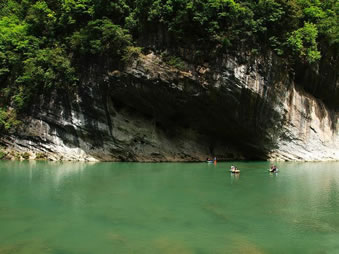 諾水河風(fēng)景名勝區(qū)內(nèi)金童山至中峰洞為腹心地帶,沿河兩岸奇峰突兀,峭壁如削,頗有桂林景致、三峽險(xiǎn)趣,其間地下溶洞密布,洞洞相連,洞中有洞,已初步探明景區(qū)溶洞128個(gè)。