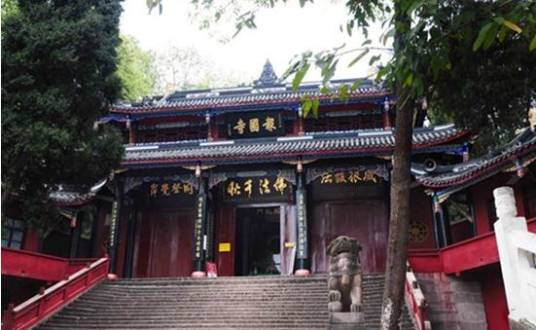 樂(lè)至報(bào)國(guó)寺位于四川省樂(lè)至縣城東北二十公里龍門(mén)鄉(xiāng)之金龜山,占地三萬(wàn)多平方米。據(jù)《樂(lè)至縣志》記載,報(bào)國(guó)寺始建于隋開(kāi)皇二年(公元582年),距今已有一千四百多年歷史。歷盡滄桑,幾度興廢;如今值國(guó)運(yùn)昌盛,佛教興隆,歷兩代住持之艱辛締造,廣大信眾之盡心護(hù)持,終使蜀中現(xiàn)存不多的千年古剎歷劫重光!皥(bào)國(guó)”二字作為寺廟名稱(chēng)在叢林中有多少,沒(méi)有進(jìn)行過(guò)考證。在川內(nèi)還有峨眉山下的“報(bào)國(guó)寺”,因此,特別將樂(lè)至縣境內(nèi)的報(bào)國(guó)寺加上“樂(lè)至”二字,以示區(qū)別。 “報(bào)國(guó)”作為樂(lè)至報(bào)國(guó)寺的寺名,一是因?yàn)榉鸾痰淖谥际恰扒f嚴(yán)國(guó)土,利樂(lè)有情”,佛教提倡報(bào)國(guó)家恩,報(bào)眾生恩。二是據(jù)樂(lè)至縣志記載,很久以前這里是一片墳地,一位皇姑曾埋葬于此。