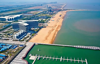 主要包括防波堤及人工海灘、游艇會所、五星級酒店、景區(qū)廣場、陸上海水浴場及低密度住宅等,是提升東疆港區(qū)商貿、旅游、休閑、宜居等整體環(huán)境,促進周邊地域開發(fā)與商業(yè)發(fā)展的綜合旅游觀光區(qū)。將起到推動整個綜合配套服務區(qū)的功能完善,帶動整個東疆保稅港區(qū)快速發(fā)展的重要作用。
