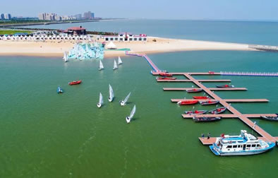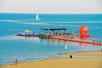 景區(qū)還將增添激情水上飛碟、快艇漂移、水上沙發(fā)、水上UU船、帆船、海上滑梯、海上蹺蹺板等數十項大型游樂設施,讓這里真正成為海上“迪士尼”。作為配套設施,在人工海灘西側修建濱海路,全長1.3公里,道路寬24米,為景區(qū)內步行觀景道路,道路兩側綠化面積約6700平方米。綠化廣場總面積12萬平方米,景區(qū)停車場總面積約4700平方米。景區(qū)設置為沙灘親水區(qū)、沙灘游泳休閑區(qū)、水上運動休閑中心和水上休閑娛樂區(qū)。其中,位于沙灘游泳休閑區(qū)已經建成的海景會所,是目前國內北方最大的單體木結構海景酒店會所,設有餐飲、住宿、淋浴、商務、娛樂等設施,并提供有地道的天津狗不理包子。另外,會所周邊正在建設游艇會所、五星級酒店、運動廣場、低密度住宅、高爾夫球場等設施。配套服務設施將逐步完善。