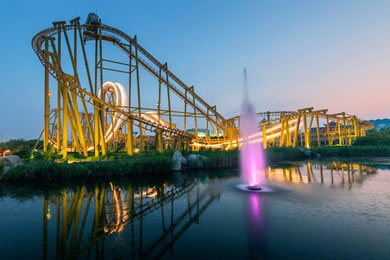 懸掛式過(guò)山車(chē)家族中的“王中王”,這就是火流星。兩腳懸空,兩側(cè)無(wú)擋,隨飛車(chē)時(shí)而高速下落、急速俯沖,時(shí)而倒立盤(pán)旋、螺旋飛馳。