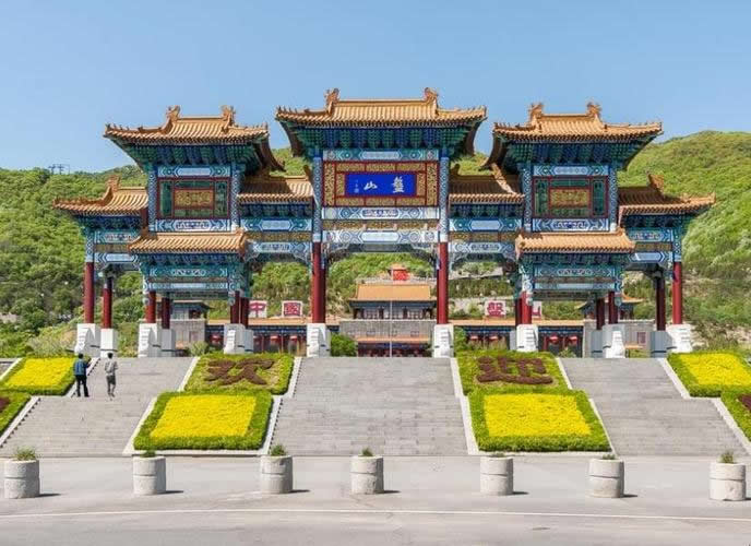 盤山萬佛寺原名“石佛殿”,位于盤山南坡、石趣園西門。由照壁、天王殿、鐵鐘、大雄寶殿等四大部分組成。盤山萬佛寺萬佛殿,殿內(nèi)供奉有中國最大的三圣佛石雕,塑有10960尊佛像。1993年,韓振帶領玉石莊人依托豐厚的文化底蘊,將石佛殿重建于原址西1公里處,并更名為“萬佛寺”。它背依陡峰,下臨危崖,是京東、津北惟一的佛、法、僧三士俱全的佛門圣地,數(shù)十里外即清晰可見!叭f佛寺”三字為原全國政協(xié)副主席、全國佛教協(xié)會會長趙樸初所題。