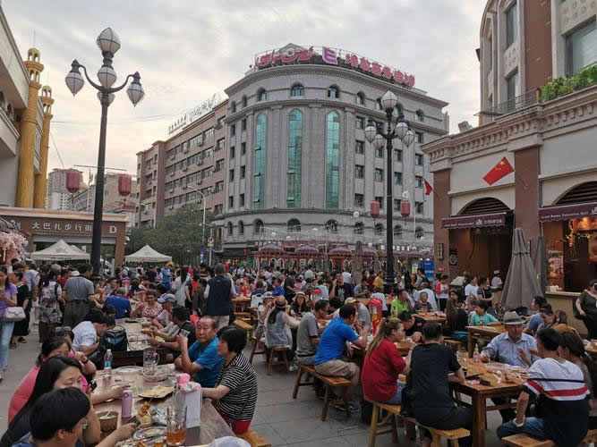 新疆國(guó)際大巴扎大型宴會(huì)廳是新疆較大的具備大型歌舞表演并同時(shí)可容納1000人用餐、以新疆民族歌舞、文化、飲食結(jié)為—體的大型歌舞宴會(huì)廳。飲食改變了傳統(tǒng)的圍餐制而采用了歐美西方的分餐形式,以新疆民間歌舞表演為主導(dǎo)飲食的觀賞性餐飲廣場(chǎng)。
