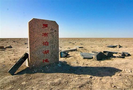 1997年底,一工程師根據(jù)地圖經(jīng)緯度測量的湖心地點(diǎn),雖然沒人考證,也成了一景觀。1997年標(biāo)志點(diǎn)只埋下一個(gè)空汽油桶,1998年2月廣東首個(gè)女子羅布泊探險(xiǎn)隊(duì)樹下第一塊木碑后,現(xiàn)已增加了數(shù)個(gè)石座、木碑,成了一些走羅布泊者留下紀(jì)念物之處。