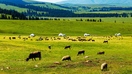 歷史上的那拉提草原有“鹿苑”之稱,《西域水道記》說其地“數(shù)泉噴涌,聚爾成川,其地多鹿,諺名鹿圈(juan)!薄缎陆畧D志》還記載說,“有獸狀如小兒,善啼笑,名曰人猿。”在茂密的牧草之中還分布多種藥草,其中如貝母、山蒜、山蔥以及高山地的雪蓮、巖蒿等都是十分罕見的。每年6月之后,大群的牲畜轉(zhuǎn)入,進(jìn)入草原的黃金季節(jié)。