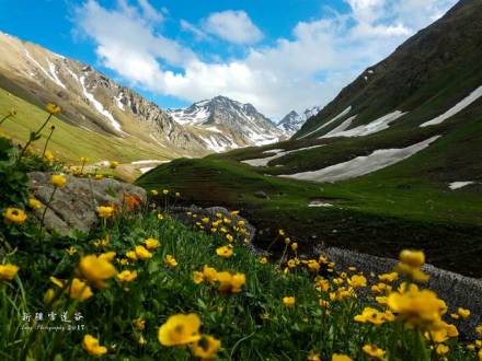 天神臺(tái)空谷幽靈,舉目藍(lán)天如洗,白云飄逸,雪山聳立。又名“雪蓮谷”,因海拔達(dá)到了3000米似與神靈同住,讓心靈在圣潔中凈化。又因其在天空中鳥瞰酷似一朵盛開的雪蓮花而得名,周圍險(xiǎn)峻的山峰如同雪蓮花瓣,山谷中奇異的鮮花如同雪蓮花蕊。積雪為雪蓮的生長提供了適宜的環(huán)境,每年7、8月份雪蓮花孤傲綻放,獨(dú)語高山。