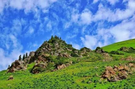 崗上地勢(shì)居高臨下,視野開闊,遠(yuǎn)遠(yuǎn)望去就猶如一只牛臥在山上吃草,在這里不僅可以眺望遠(yuǎn)處連綿群山,四圍迢遆叢林,還可以俯瞰崗下的山谷,觀賞到山谷叢林間若隱若現(xiàn)的哈薩克冬窩子和坡地牧場(chǎng)上悠閑吃草的牛羊。臥牛崗下這條山谷,是盤龍景區(qū)無數(shù)山谷中最具經(jīng)典性的一座。