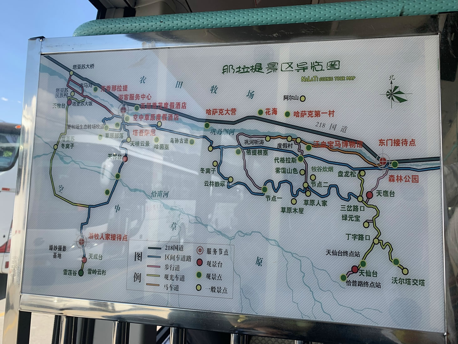 那拉提旅游風(fēng)景區(qū)內(nèi)集草原、溝谷、森林于一體,植被覆蓋率高,野生動(dòng)物資源豐富,因自然生態(tài)景觀和人文景觀獨(dú)具特色,而被譽(yù)為“天山綠島”“綠色家園”“五彩草原”。主要景點(diǎn)有天界臺(tái)、游牧人家、塔吾薩尼(哈薩克語意為“美麗的山溝”)、天仙臺(tái)、沃爾塔交塔觀景臺(tái)、雪蓮谷等。