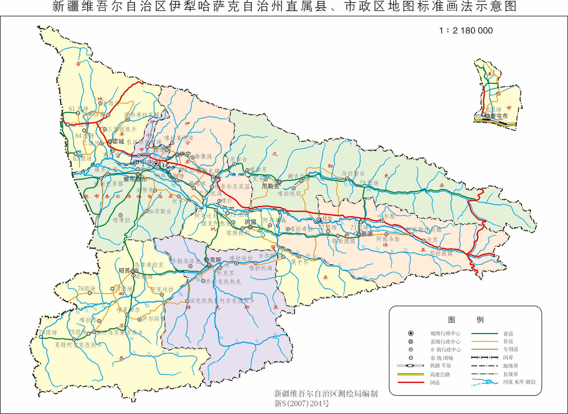 伊犁哈薩克自治州轄3個(gè)縣級(jí)市、7個(gè)縣、1個(gè)自治縣: