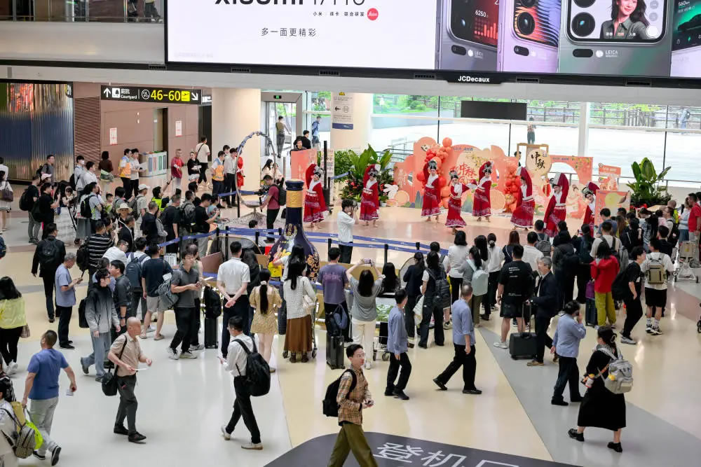 據(jù)介紹,圍繞營造濃厚節(jié)日氛圍,成都雙流、成都天府兩場組織了“國慶76周年”童聲合唱快閃、“高效赴商途慢品小城韻”聯(lián)合營銷、“山河錦繡·筆賦同欣”“禮樂賀國慶漢服迎中秋”等一系列主題文化活動。通過節(jié)目展演、互動游戲等形式增強旅客參與感與節(jié)日儀式感,并結(jié)合國慶元素與成都地標(biāo)、機場吉祥物進行氛圍布置,充分展現(xiàn)了機場的服務(wù)溫度與文化內(nèi)涵。(成都日報錦觀新聞記者 楊富 供圖 四川機場集團)