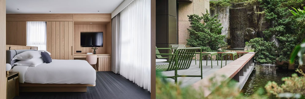臺(tái)北金普頓大安酒店為金普頓品牌亞洲首店,位于臺(tái)北東區(qū)靜謐街巷,與購物中心和捷運(yùn)站僅隔一街,周邊遍布文藝畫廊、精品店與人文咖啡館,雖鄰喧囂卻宛如都市靜謐方舟。129間客房與套房融合復(fù)古與白瓷層疊美學(xué),與透光天井相呼應(yīng),處處彰顯設(shè)計(jì)巧思。12樓摩登餐酒館The Tavernist為米其林指南推薦餐廳,寬敞露臺(tái)可俯瞰臺(tái)北城景與臺(tái)北101。酒店設(shè)施完善,包括24小時(shí)健身房及每日“社交時(shí)光”,賓客可盡享設(shè)計(jì)感與都市雅致。