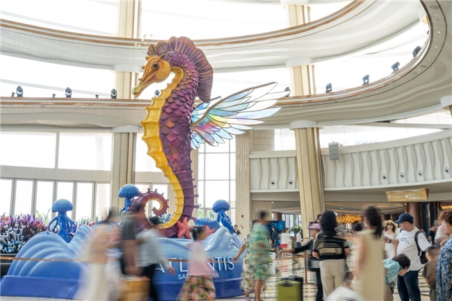 歲末年初,三亞·亞特蘭蒂斯以一場(chǎng)“海洋奇幻”主題活動(dòng),為賓客們帶來(lái)了一場(chǎng)前所未有的跨年盛宴。酒店大堂內(nèi)一座高達(dá)6米的巨型海馬雕塑矗立其中,與海洋元素創(chuàng)意融合,讓海洋精靈與節(jié)日氛圍碰撞出獨(dú)特火花。