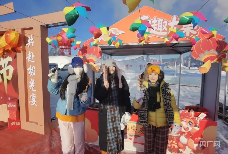 現(xiàn)場游客互動(央廣網(wǎng)發(fā) 漠河市委宣傳部供圖)