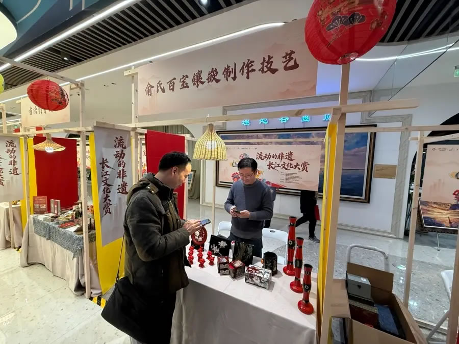 掛上紅燈籠,擺上精致的剪紙、竹編、漆器,一個(gè)熱鬧的非遺市集開(kāi)張了。作為“上海新年第一游”寶山主會(huì)場(chǎng)活動(dòng)的組成部分,昨天,“流動(dòng)的非遺·長(zhǎng)江文化大賞”率先在寶山濱江的上海·海上世界商圈拉開(kāi)序幕。