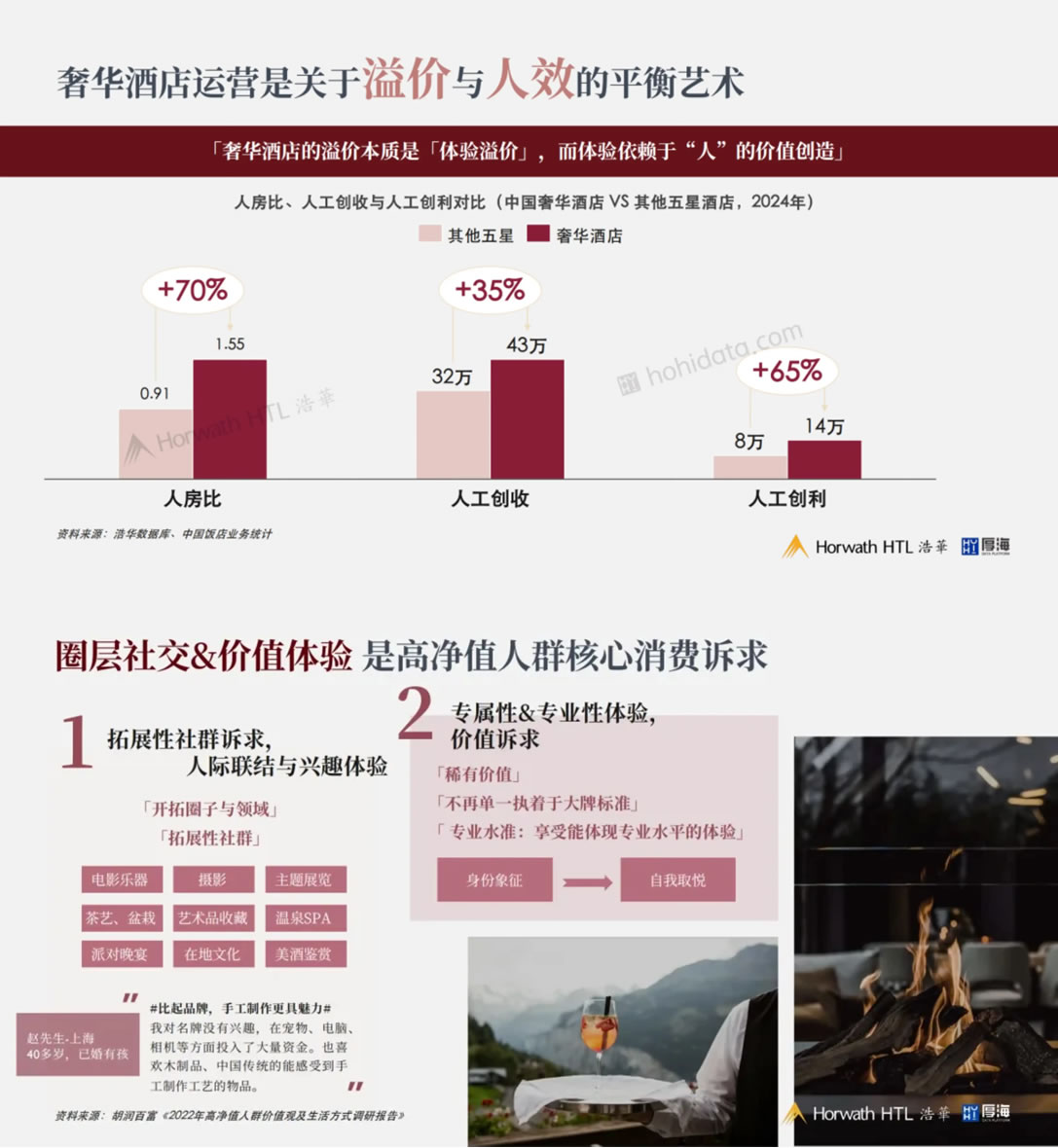值得注意的是,奢華酒店運(yùn)營本質(zhì)上是溢價(jià)與人效的平衡,而高凈值人群對(duì)圈層社交和獨(dú)特體驗(yàn)的需求,正推動(dòng)高端酒店在場景營造、服務(wù)定制等方面持續(xù)升級(jí)以實(shí)現(xiàn)價(jià)值溢價(jià)。