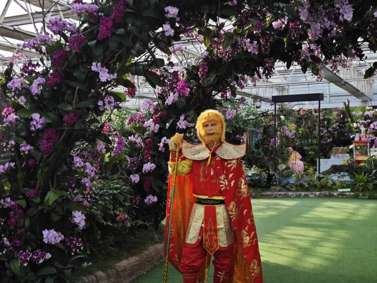 年輕群體則偏愛沉浸式互動與休閑消費,園區(qū)針對這一需求持續(xù)更新體驗內(nèi)容:古典舞樂演出增設(shè)互動環(huán)節(jié),游客可即興參與;闖關(guān)游戲融入蘭花知識,兼具趣味與科普;NPC互動劇情不斷擴(kuò)展,身著漢服的角色穿梭于花廊之間,帶領(lǐng)游客解謎打卡;漢服攝影區(qū)提供多樣妝造與場景,成為年輕人拍照分享的熱門選擇。