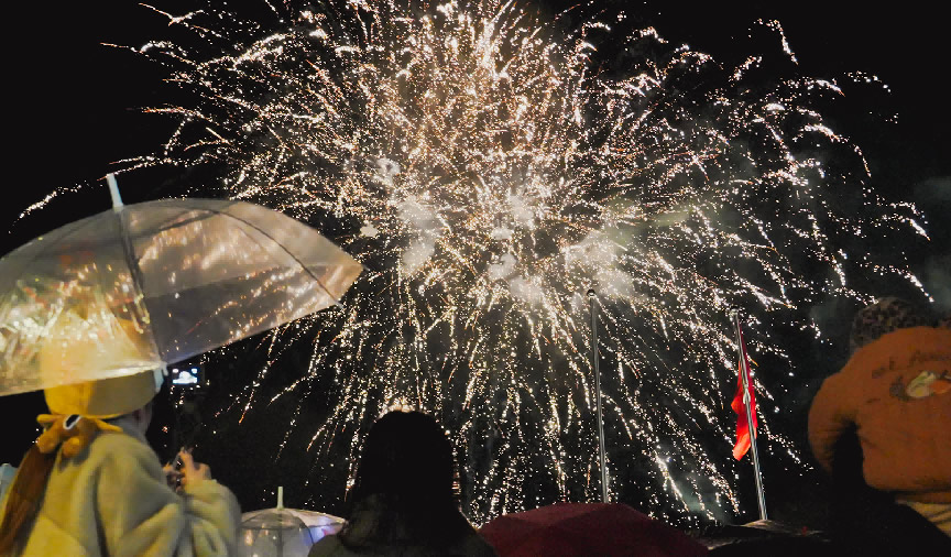 在京南華美勝地,游客們歡聚一堂,點(diǎn)燃跨年篝火,慶祝新年到來(lái)。