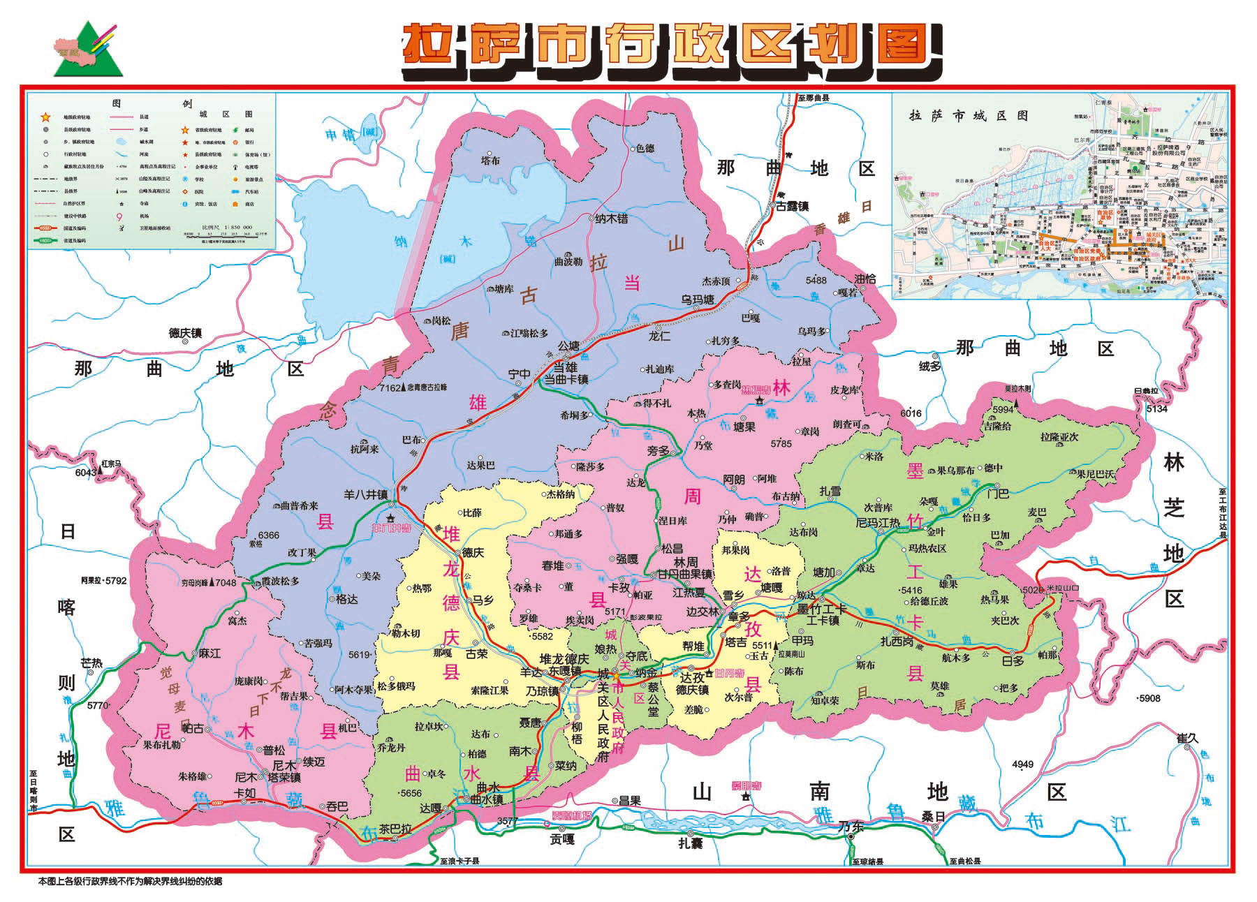 拉薩市轄3個(gè)市轄區(qū)、5個(gè)縣: