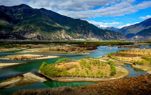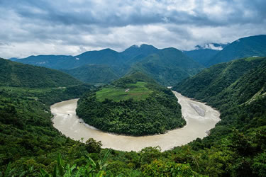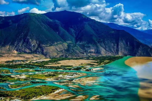 從空中或從西興拉等山口鳥瞰大峽谷,在東喜馬拉雅山無數(shù)雪峰和碧綠的群山之中,雅魯藏布江硬是切出一條筆陡的峽谷,穿越高山屏障,圍繞南迦巴瓦峰作奇特的大拐彎,南瀉注入印度洋,其壯麗奇特無與倫比。