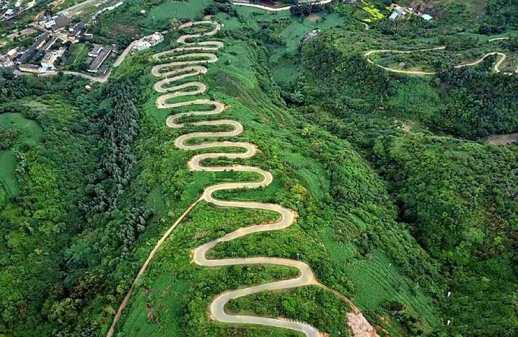 68道拐是宜良縣城西郊通往靖安哨村的盤(pán)山公路,為明清時(shí)期的“通京大道”,亦稱“茶馬古道”,短短6.8公里,就有68道彎。是世界公路史上的奇跡,彎道最為密集,可稱為“天下彎道最密集的公路”。