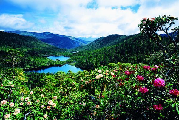 老君山風景區(qū)山中的確有九十九個冰蝕湖,而且每個湖又呈現出不同的色彩和姿態(tài),與童話般的“九寨溝”相比,它更多了一分大氣、少了一分矯情。特別在每年的5、6月,漫山的花在純凈得幾乎透明的天空下開放了,遠遠看去,就像是一張五彩的草甸。
