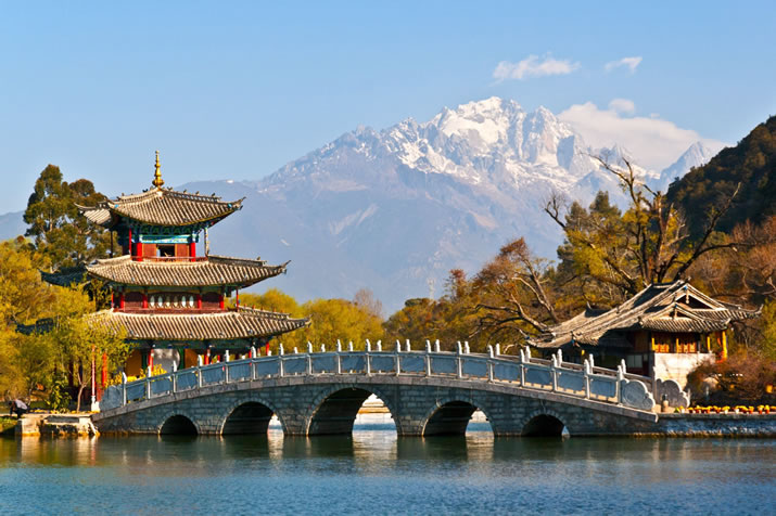 黑龍?zhí)段挥邴惤懦潜倍讼笊街矗瑥墓懦撬姆浇盅亟?jīng)緯縱橫的玉河溯流而上,約行一千米有一處晶瑩清澈的泉潭,即為中外聞名的黑龍?zhí)。黑龍(zhí)恫粌H是麗江古城的活水源頭,也是古城區(qū)的旅游景點(diǎn)。潭內(nèi)隨勢(shì)錯(cuò)落的古建筑有龍神祠、得月樓、鎖翠橋、玉皇閣和后來(lái)遷建于此的原明代芝山福國(guó)寺解脫林門(mén)樓、五鳳樓,原知府衙署的明代光碧樓及清代聽(tīng)鸝榭、一文亭、文明坊等建筑。位于黑龍?zhí)吨醒氲牡迷聵巧希瑧覓煊泄粝壬H筆題寫(xiě)的楹聯(lián):“龍?zhí)兜褂呈,潛龍(jiān)谔欤w龍?jiān)诘;玉水縱橫半里許,墨玉為體,蒼玉為神”。黑龍?zhí)对涣腥搿吨袊?guó)名泉》《中國(guó)風(fēng)景名勝》等書(shū)。