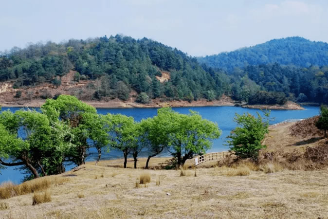 亮山天池位于涌寶鄉(xiāng)南,距縣城66千米,距涌寶鄉(xiāng)駐地7千米,海拔2400米,蓄水240萬(wàn)立方米,面積0.1平方千米,南依亮山林海——面積1.96萬(wàn)畝的生態(tài)林場(chǎng);北臨草場(chǎng)花海。