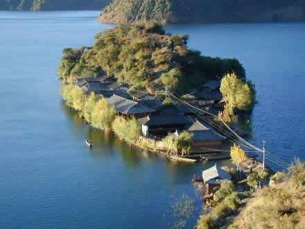 里格半島,位于東北部格姆女神山山麓,是瀘沽湖七個(gè)珍珠寶石般島嶼中的一個(gè),與謝瓦俄島,里務(wù)比島一起被譽(yù)為“蓬萊三島”。