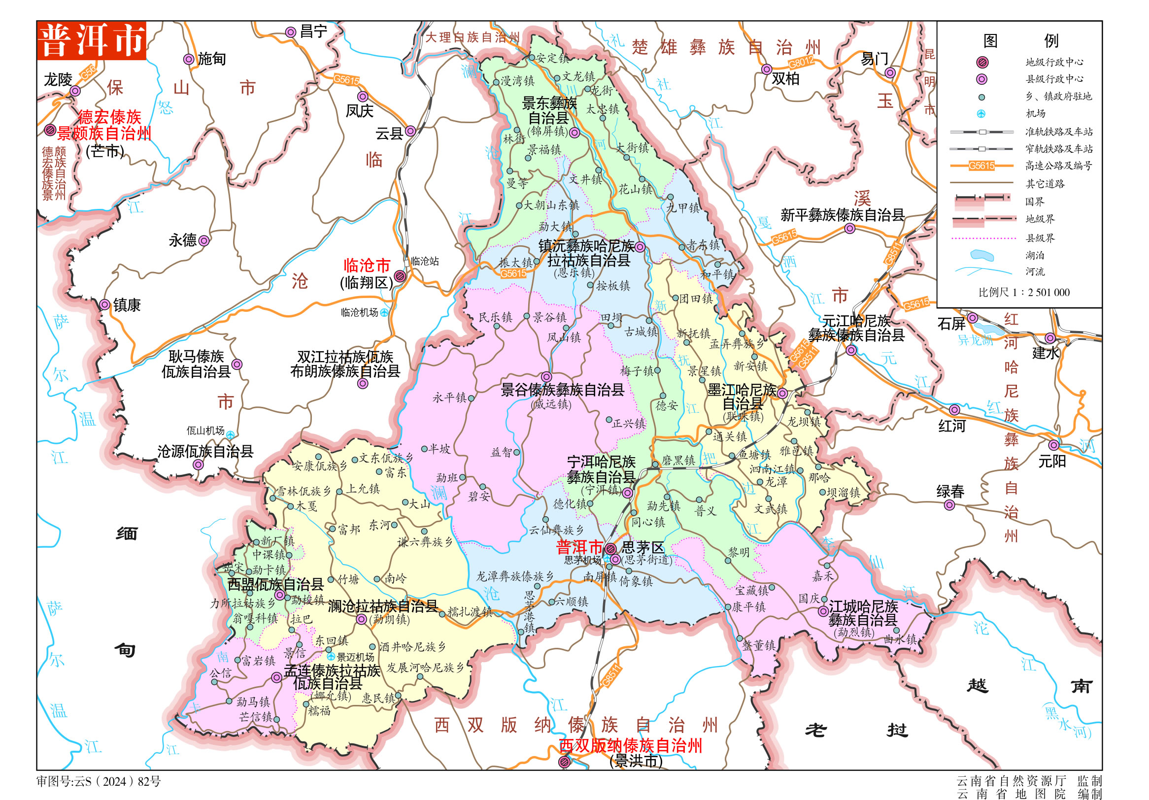 普洱市轄1個(gè)市轄區(qū)、9個(gè)自治縣: