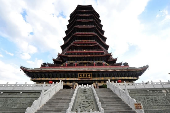 靖寧寶塔位于寥廓山頂,屬曲靖城市最高點(diǎn)的地標(biāo)性建筑。靖寧寶塔占地9997平方米(13畝)、總投資7000萬(wàn)元,分為主塔建設(shè)和室外環(huán)境配套建設(shè)兩部分。主題建筑面積7427平方米,建筑立面為明清仿古式樓閣造型,主塔為9層,底層為四邊形,二層以上呈八邊形布置,每層收分60厘米,塔總高81.6米,塔主題由塔基、塔身、塔剎三部分組成。