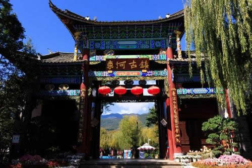 束河古鎮(zhèn)位于北緯26度55分,東經(jīng)100度12分。束河古鎮(zhèn)依山傍水,民居房舍錯落有致,面臨田園阡陌;北瞰玉龍,東南瞻象山、文筆,四時風(fēng)光變幻,尤其村頭兩處泉源,其中一潭水,稱為“九鼎龍?zhí)丁,又稱“龍泉”。在麗江所有景區(qū)的核心部位,是游覽麗江古城、玉龍雪山、瀘沽湖、長江第一灣和三江并流風(fēng)景區(qū)的樞紐點(diǎn)。