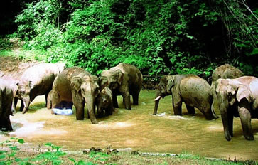 三岔河自然保護區(qū)以其特有的熱帶原始森林景觀和數(shù)量較多的野生亞洲象(約130多頭)而著稱于世。公園所在地原來就有一個野象經(jīng)常出沒飲水的象塘,自八十年代末期開始,國家級自然保護區(qū)的下屬 有關單位就在象塘附近的河畔投放食鹽,長期對野象進行引誘,成群的野象不時出現(xiàn)在河畔。