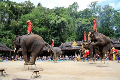 步行道旁的森林中,處處可見野象出沒和活動的痕跡,幸運的游客或許還在傍晚之際或黎明之時看到林間漫游的野象群。在野象谷,游人可觀看大象表演節(jié)目,這里現(xiàn)有馴養(yǎng)的大象16頭,這是我國第一所馴象學校,這些訓練有素的龐然大物,會向游客鞠躬,表示歡迎,會作頭頂?shù)、腳朝天的倒立,會合著音樂的旋律跳舞、能過獨木橋、會用象鼻作"踢"球表演……游客可騎在象背上或坐在象鼻上,與象合影,甚至可躺在地上,讓大象用腳給你按摩……它們的靈性乖巧,令你不得不拍案叫絕。 |